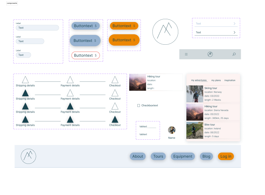 UI daily design challenge with daily ui tasks This is a UI project-only. By completing the tasks set I merged it into one project: a plattform for mountain travellers to plan and book their tours. style guide #19434F #EDF2F8 #EC8701 Inter H1 | extra bold | 48pxH2 | extra bold | 40 H3 | extra bold | 32body | regular | 16subline | regular | 24 Inter H1 | semi bold | 32pxH2 | semi bold | 24 H3 | regular | 16body | light | 14subline | regular | 14 components desktop screens landing page credit card payment mobile screens sign up personal accountcalculator_overlaycalculator Previous image Next image previous project see all